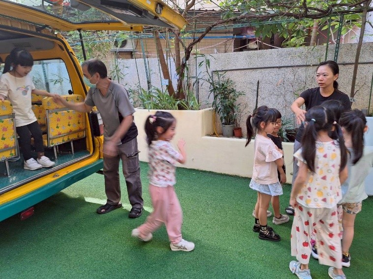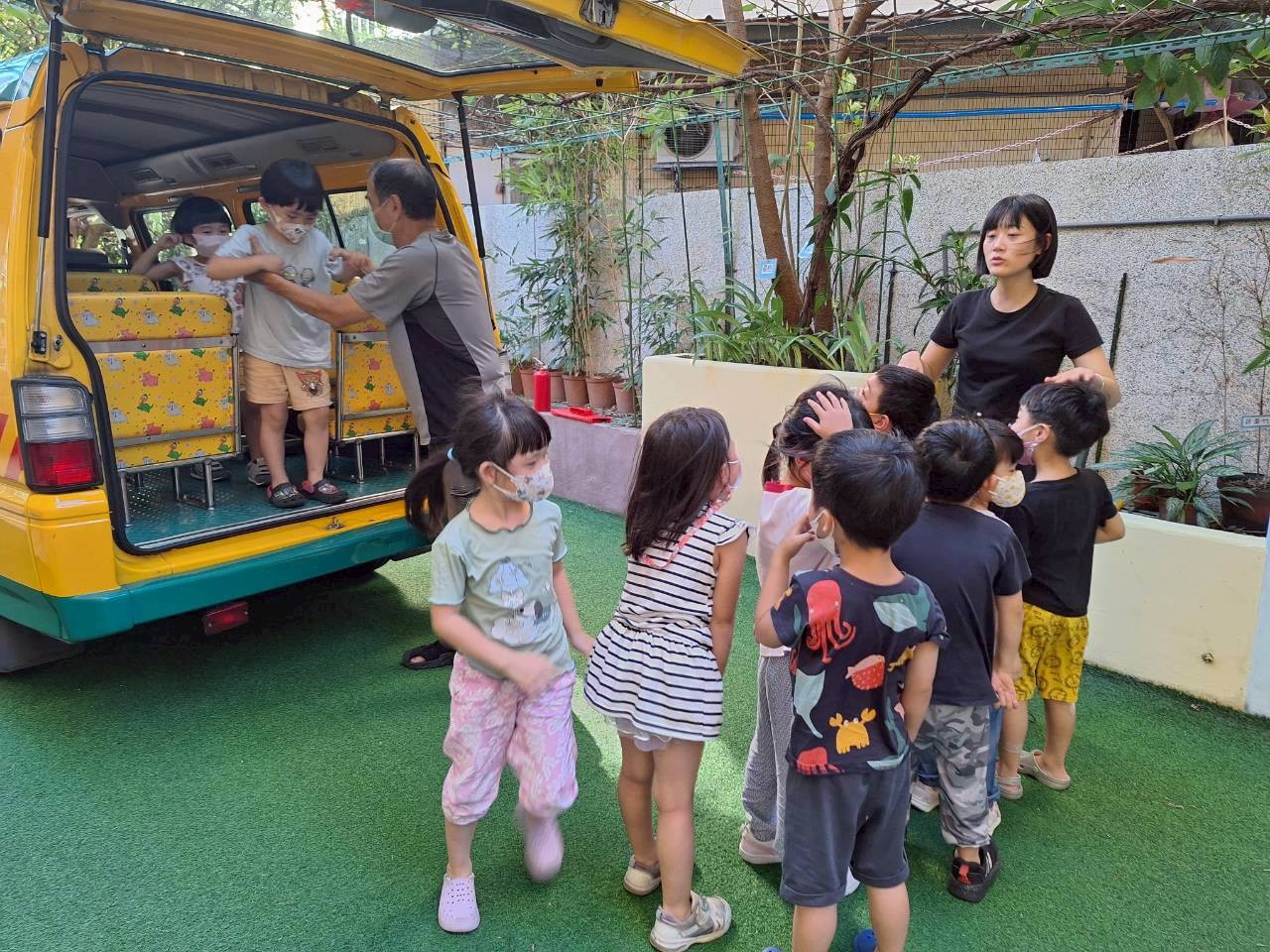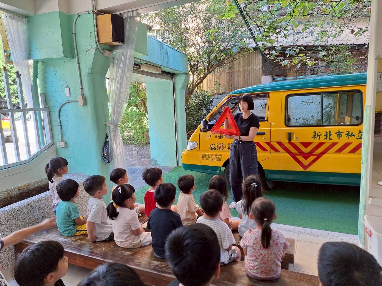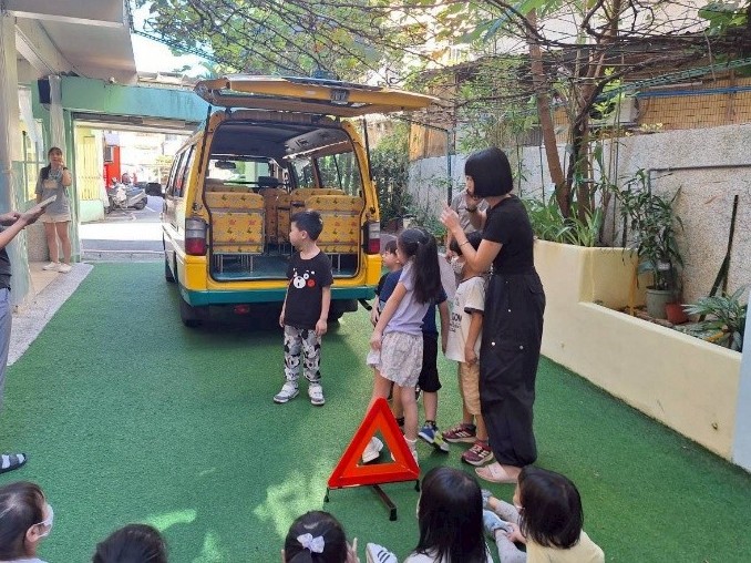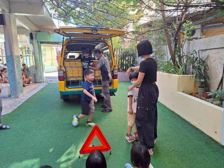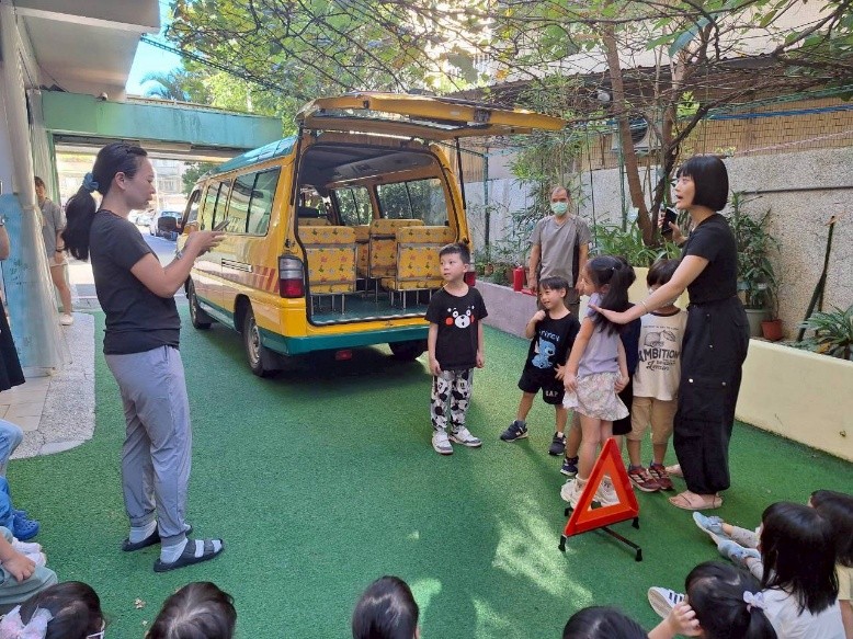 老師陪伴幼童身旁照顧,安撫幼童情緒,清點幼童人數,瞭解每位幼童之傷勢狀況 | 駕駛於幼童專用車後放置警告標誌,避免發生二次車禍 |