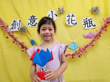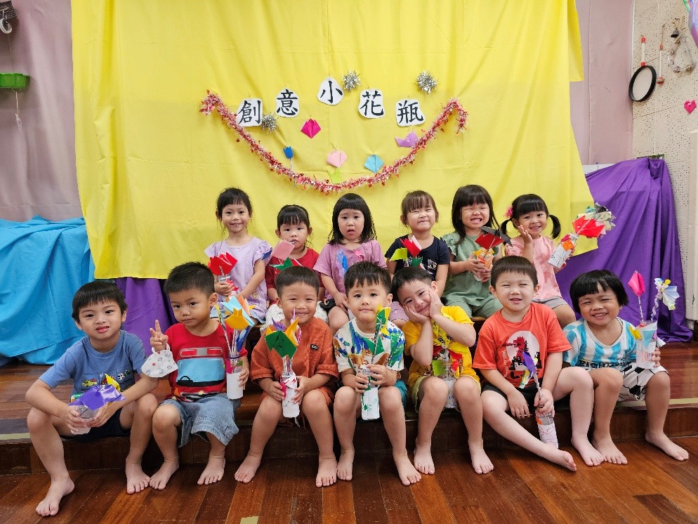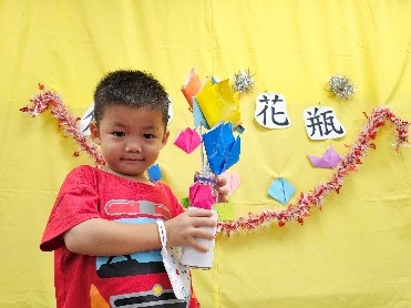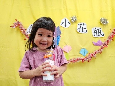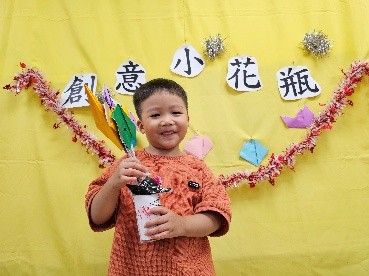 貓咪公園內的花圃,有著許多孩子們摺的小花,孩子們對摺紙蠻有興趣的,幾位孩子將自己摺的小花集中起來放入瓶子內,用來裝飾野餐桌。在親職活動日請爸爸媽媽帶孩子們來摺小花朵或昆蟲..等物品,讓孩子們來設計一個自己獨特的小花瓶。