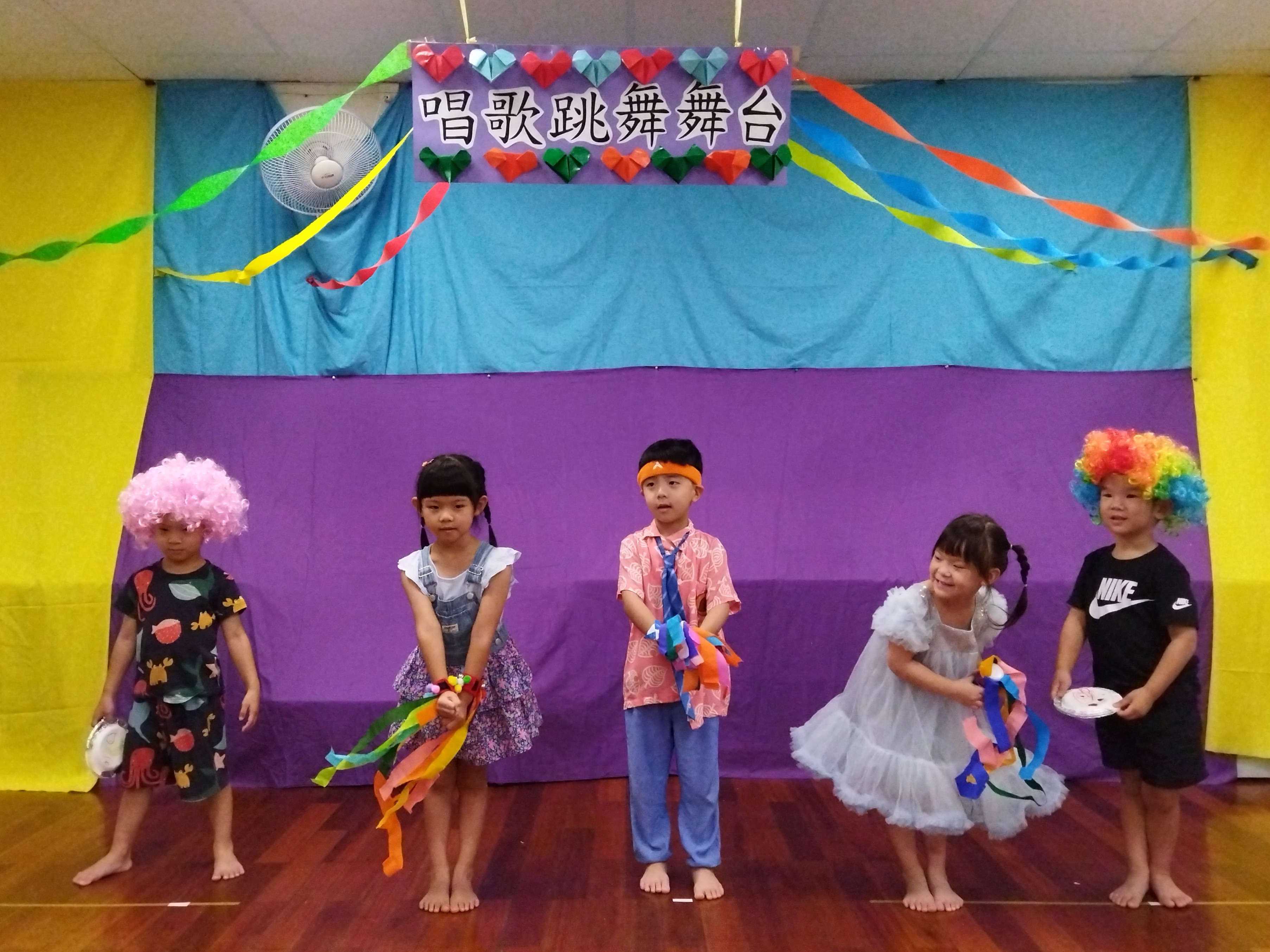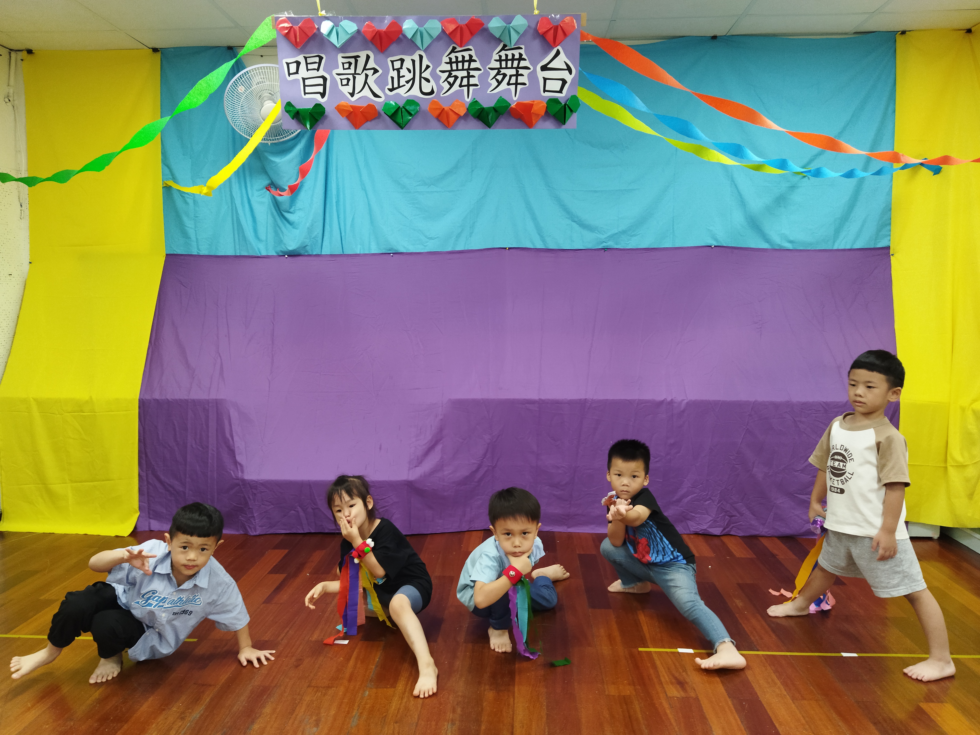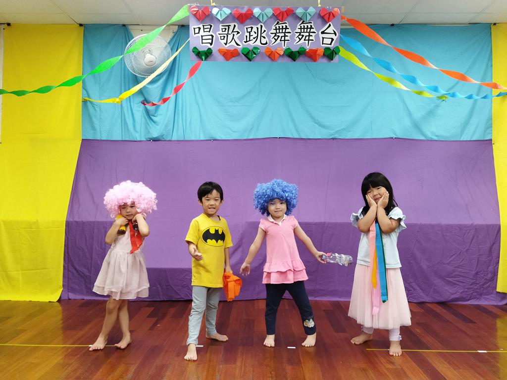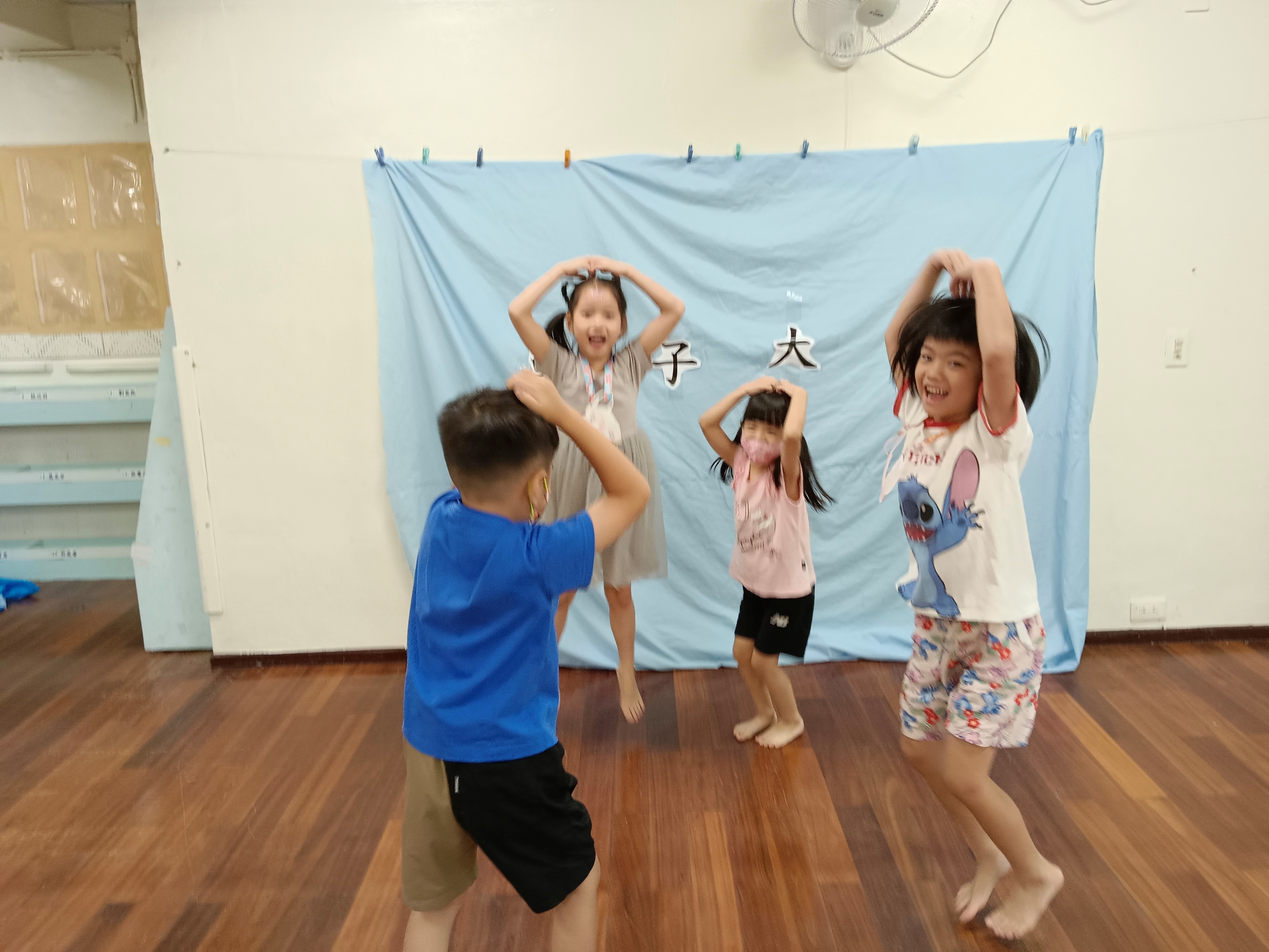 我們表演的歌曲是~點仔膠。點仔膠黏到腳,叫阿爸買豬腳… | 表演結束,來個帥氣的ending pose! |