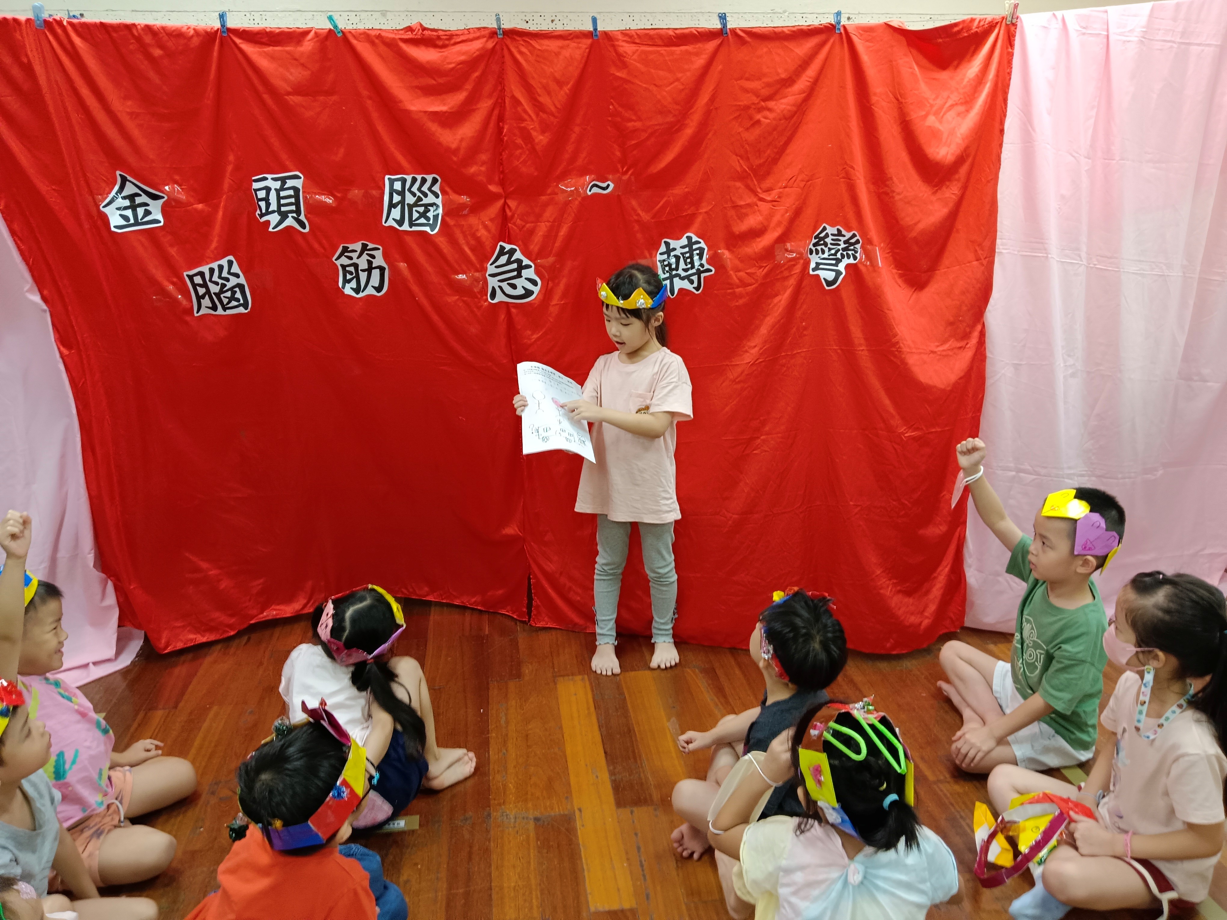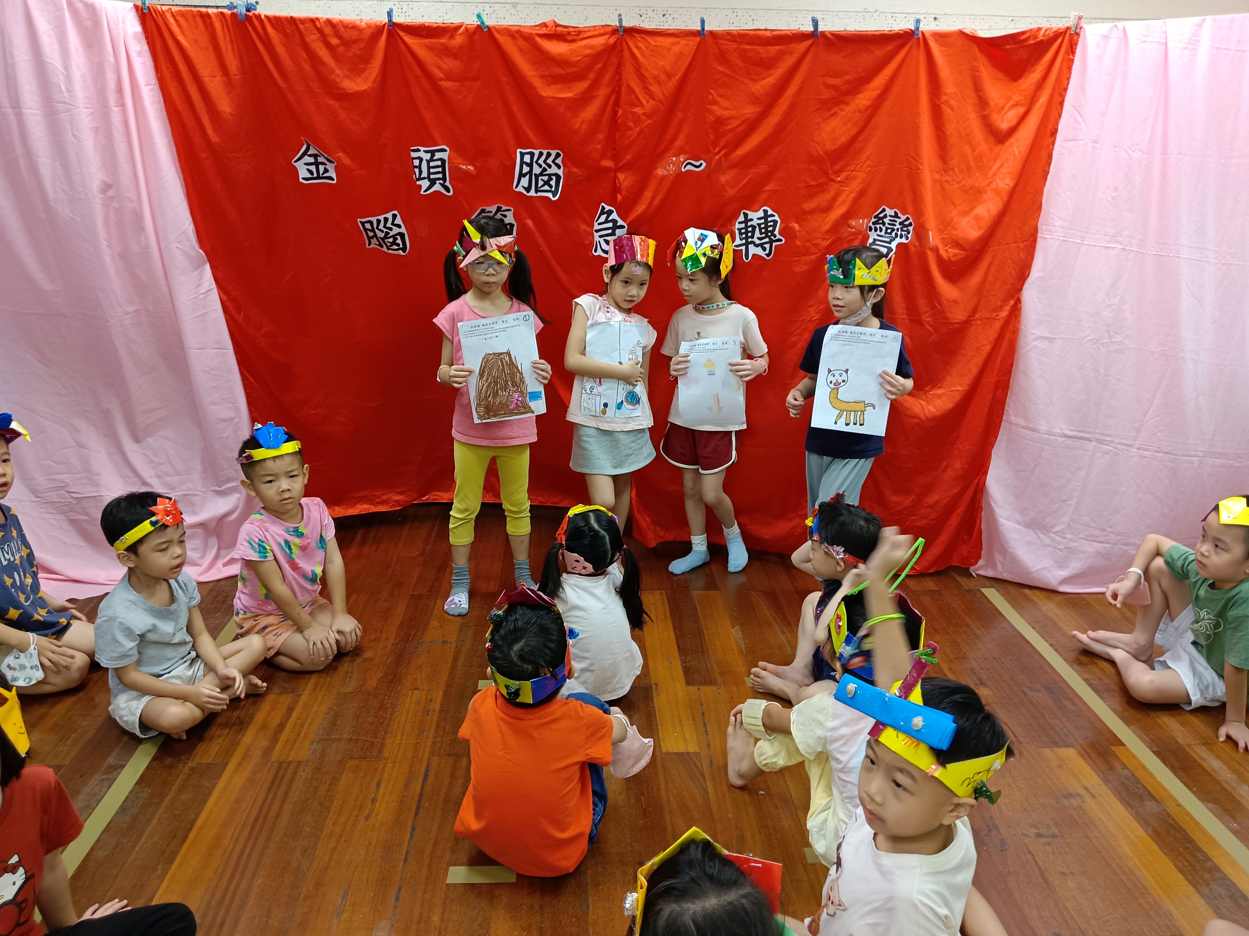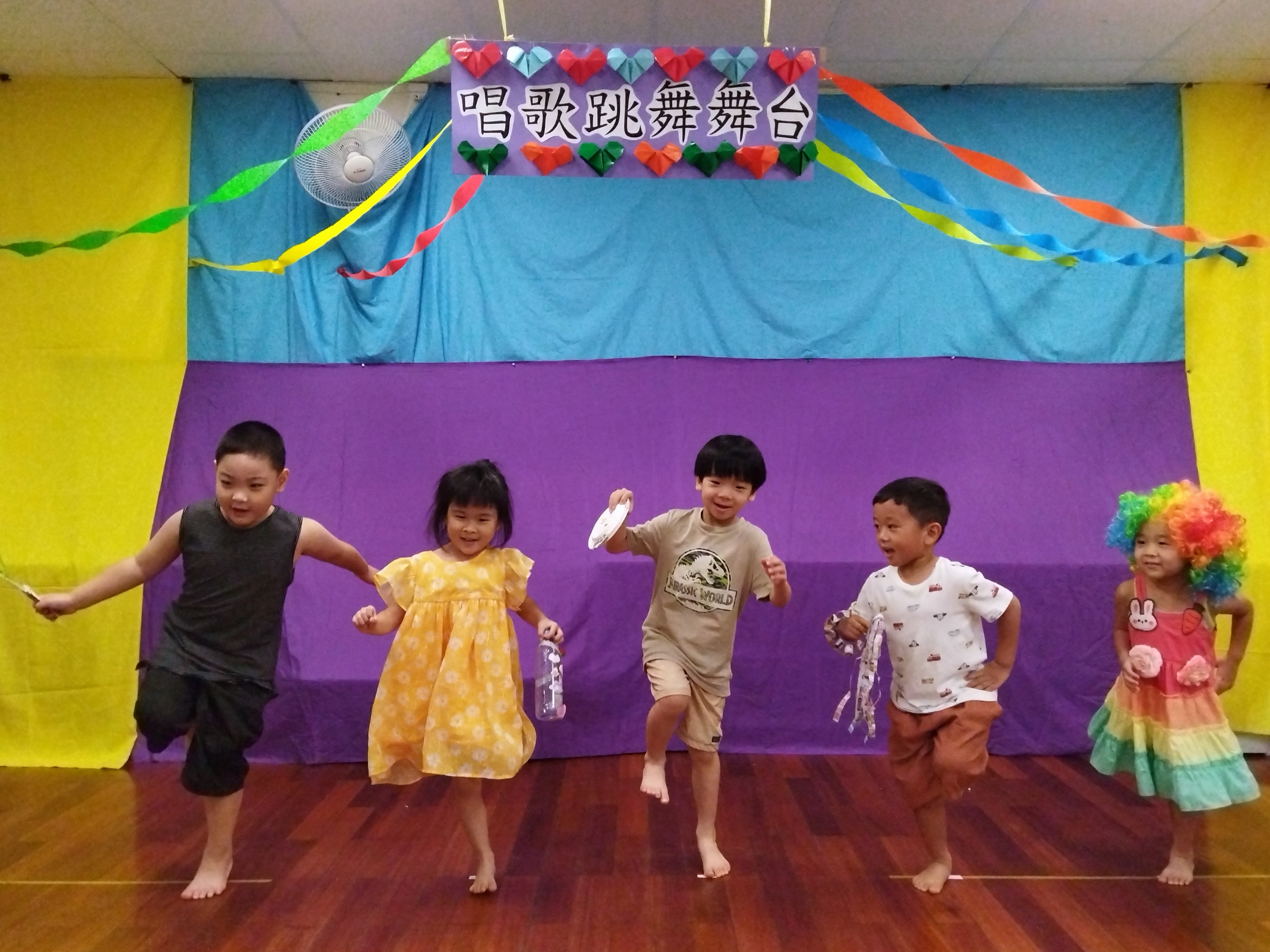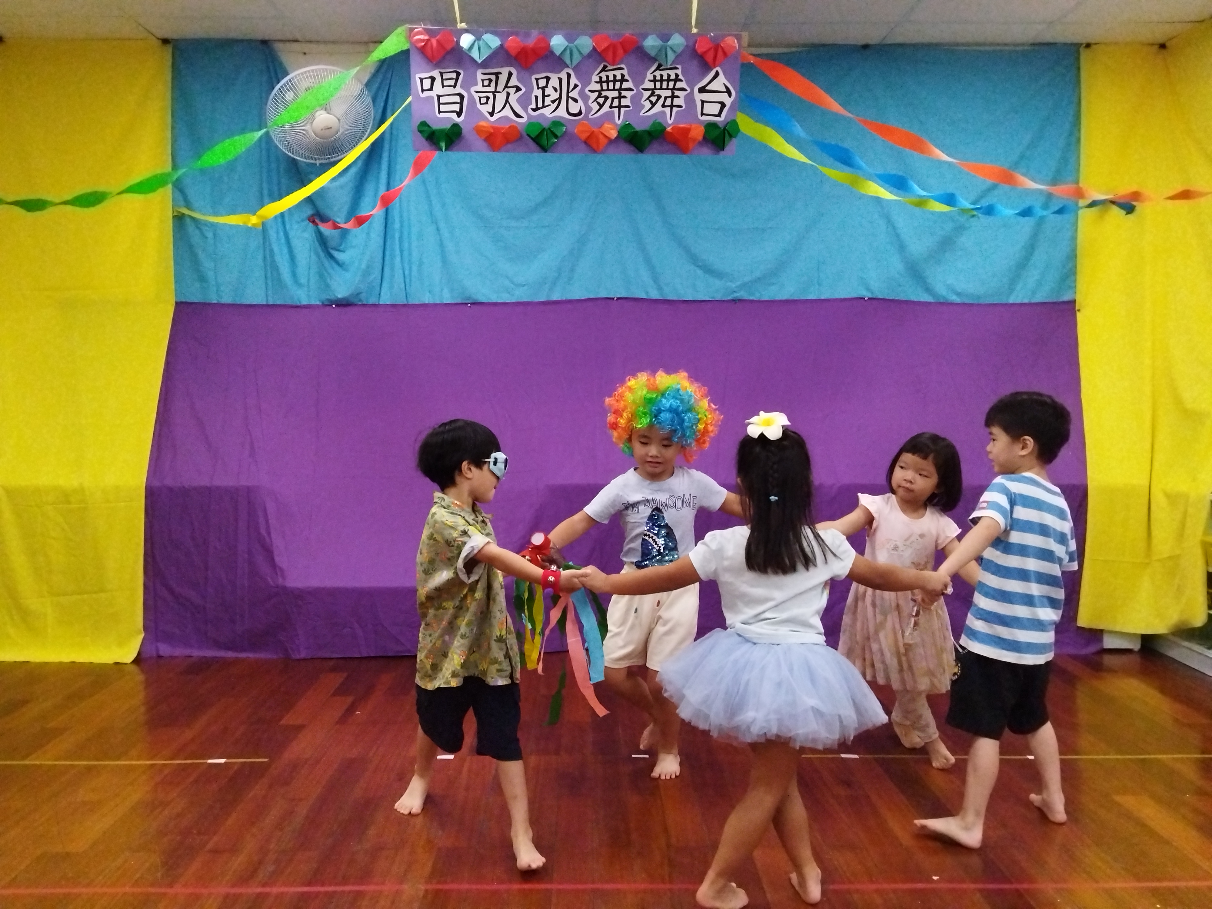 我們表演的歌曲是~點仔膠。點仔膠黏到腳,叫阿爸買豬腳… | 表演結束,來個帥氣的ending pose! |