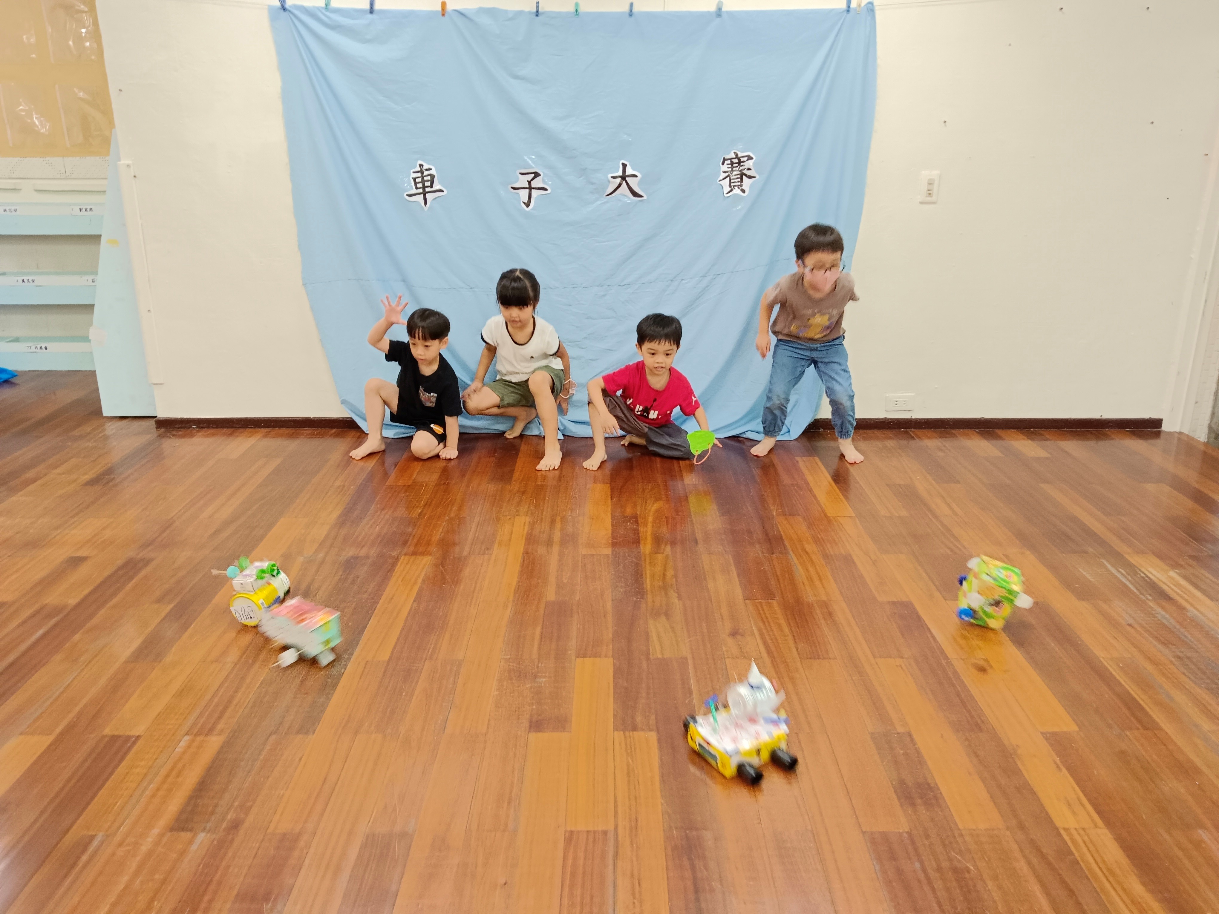 車子奮力往前衝,看誰跑最遠 | 選手們相互頒獎,肯定彼此的努力 |