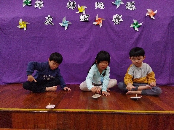 帶著自己最厲害的陀螺參加陀螺比賽。 | 你看,我們的陀螺轉動起來了,很讚吧! |
