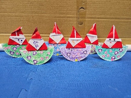 | 先來摺聖誕老公公 | 送給朋友的,要細心一點 | 這是老公公尖尖的帽子 |