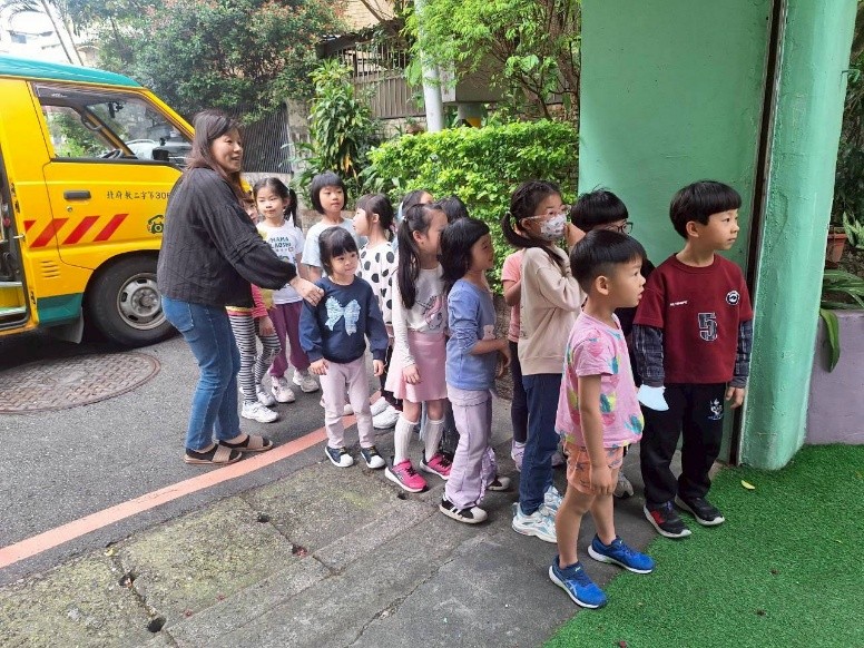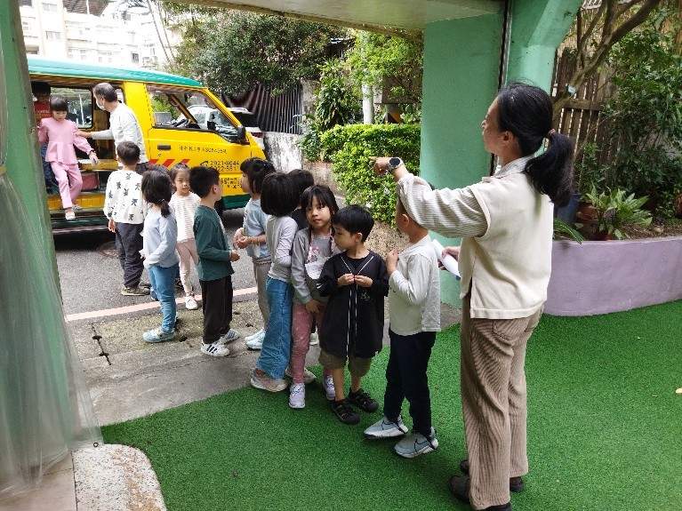 駕駛立刻減速並選擇安全地點靠邊停車,老師迅速引導幼兒依序下車。 | 立刻通知幼兒園事故發生情形,並請園方派員前往現場協助後續處理。 |