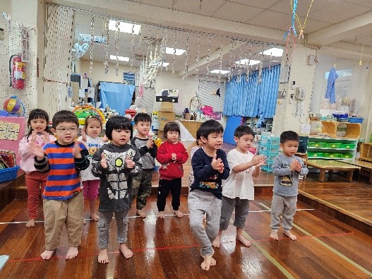 動動手呀!動動腳呀!每天都要來運動。除了老師來帶大家運動外,我們綿羊班還有許多的小老師呢,我們要來玩大風吹,每位可愛的孩子都要化身為厲害的運動小老師。