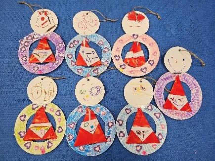 孩子會先找一位朋友,問問朋友想要的禮物是哪一種(有聖誕吊飾和聖誕不倒翁可以選擇),送禮的孩子就會精心設計他要送朋友的小禮物,並且在禮物的後面會有秘密的感謝話喔~~
