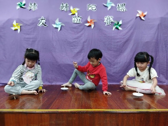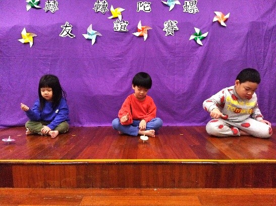 帶著自己最厲害的陀螺參加陀螺比賽。 | 你看,我們的陀螺轉動起來了,很讚吧! |